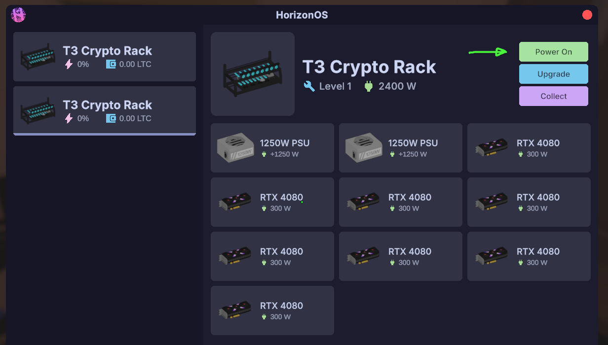 Power Onto turn on your Crypto Rack