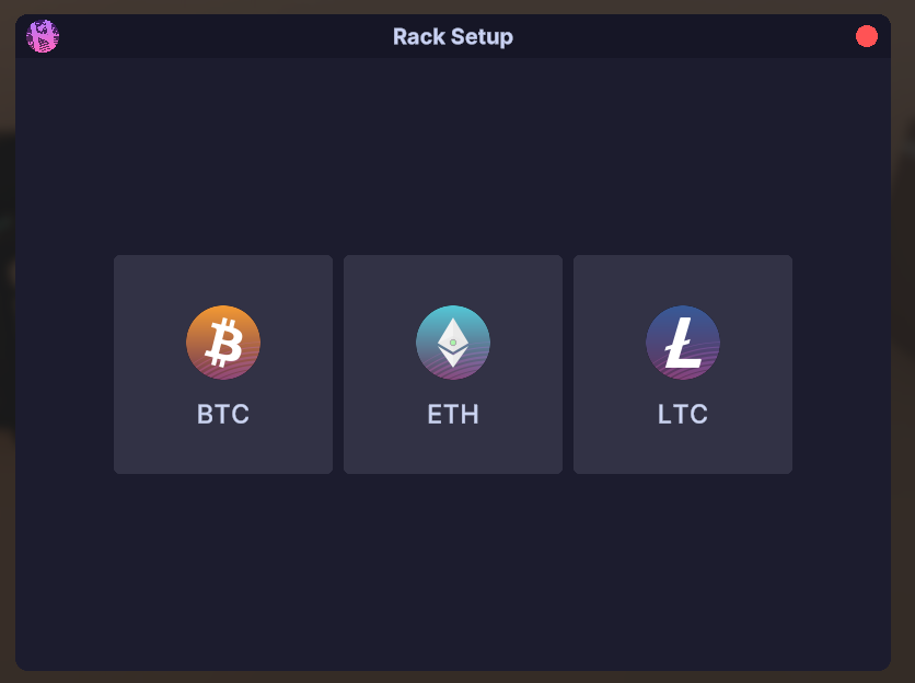 Select a cryptocurrency for the rack to mine