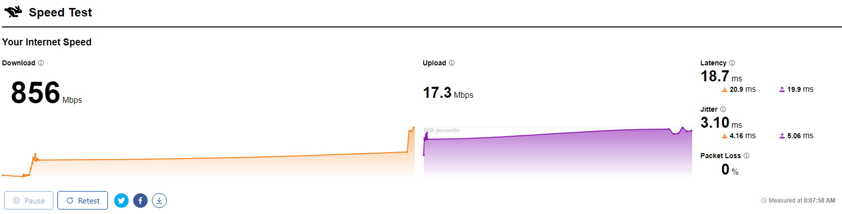Use Cloudflare Speed Test for testing, as it provides the needed info to diagnose these issues. Once you open the page, wait until the test fully completes.
